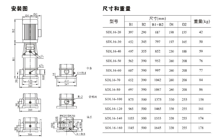 南元SDL16/SDLT16立式多級(jí)離心泵有不同的泵規(guī)格和不同級(jí)數(shù),以滿(mǎn)足所需的流量和壓力。
