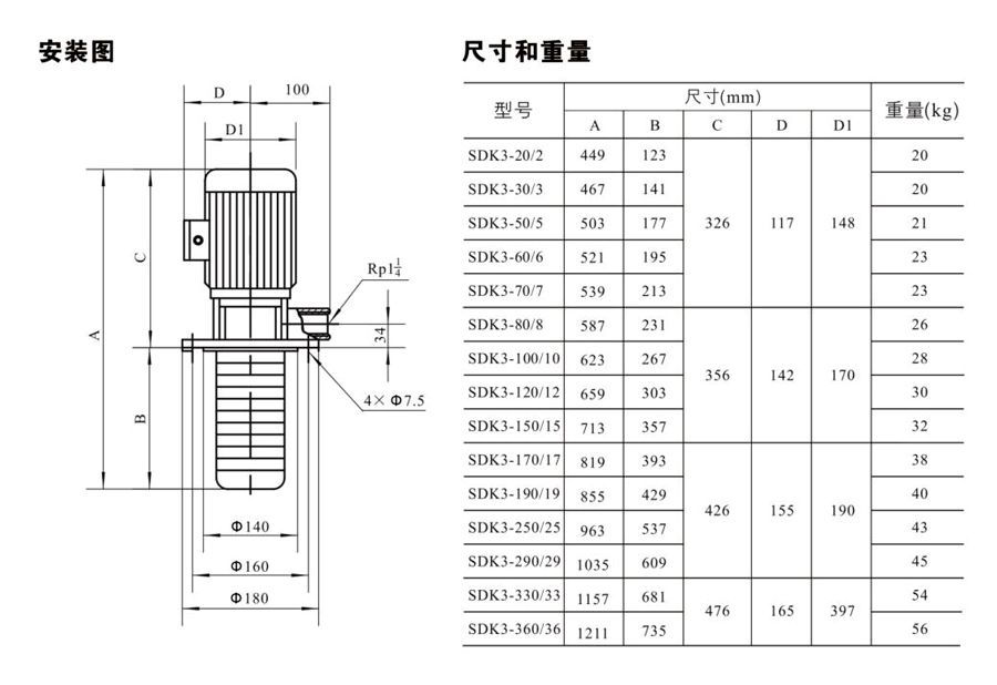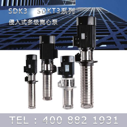 SDK3/SDKT3為配用標(biāo)準(zhǔn)電機的非自吸立式多級離心泵,電機軸和泵軸用聯(lián)軸器直接聯(lián)接的結(jié)構(gòu)。為滿足水槽或容器的安裝深度,可安裝空套的腔體來改變泵本身的侵入 深度。