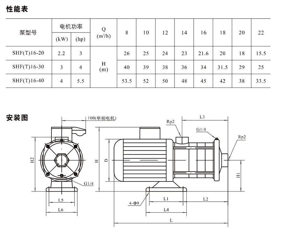 SHL/SHF/SHFT16為臥式多級非自吸多級離心泵,配加長軸電機。緊湊式結構使泵尺寸很小,軸向入口或徑向出口。