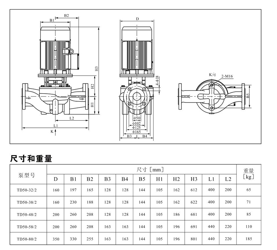 TD50系列單級管道離心泵,配有標(biāo)準(zhǔn)電 機(jī)和機(jī)械密封。此類產(chǎn)品的結(jié)構(gòu)與相近類型產(chǎn)品相比,更不易受到泵送液體中雜質(zhì)的影響。產(chǎn)品設(shè)計(jì)為頂部可拉出的拆裝形式,其可 以在不影響管路系統(tǒng)的情況下對泵進(jìn)行維修。所有泵采用創(chuàng)新式便拆式機(jī)械密封,更好機(jī)械密封無需拆卸電機(jī)。
