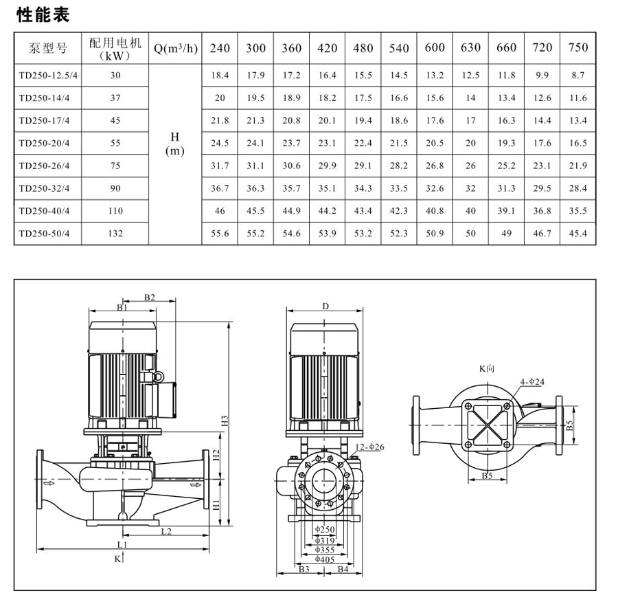 TD250系列單級管道離心泵,配有標準電機和機械密封。此類產(chǎn)品的結構與相近類型產(chǎn)品相比,更不易受到泵送液體中雜質的影響。產(chǎn)品設計為頂部可拉出的拆裝形式,其可以在不影響管路系統(tǒng)的情況下對泵進行維修。所有泵采用創(chuàng)新式便拆式機械密封,更好機械密封無需拆卸電機。